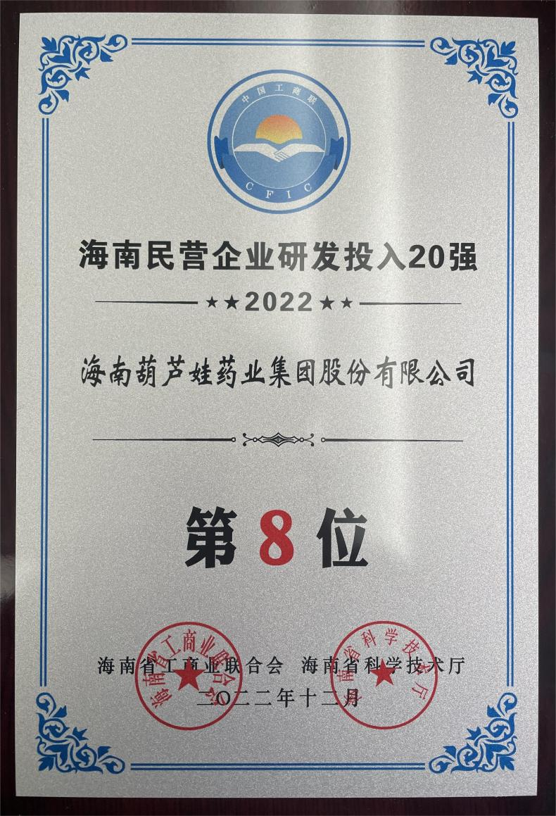 12月23日,2022海南民营企业50强和研发投入20强发布会在海口举行。会上发布了“2022海南民营企业50强”“2022海南民营企业研发投入20强”榜单和分析报告。必威betway药业再次荣登两榜,在海南民营企业50强榜单中位列第25位,较去年上升8位,这也是公司连续三年登榜;在海南民营企业研发投入20强中位列第8位,较去年上升7位。