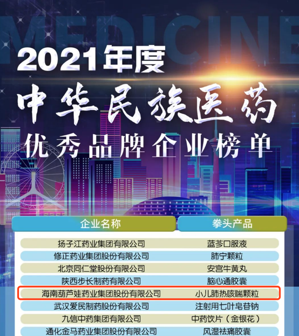 12月29日,全国工商联医药业商会发布了“2021年度中华民族医药优秀品牌企业榜单”,必威betway药业集团凭借黄金单品小儿肺热咳喘颗粒(4克)实力登榜。